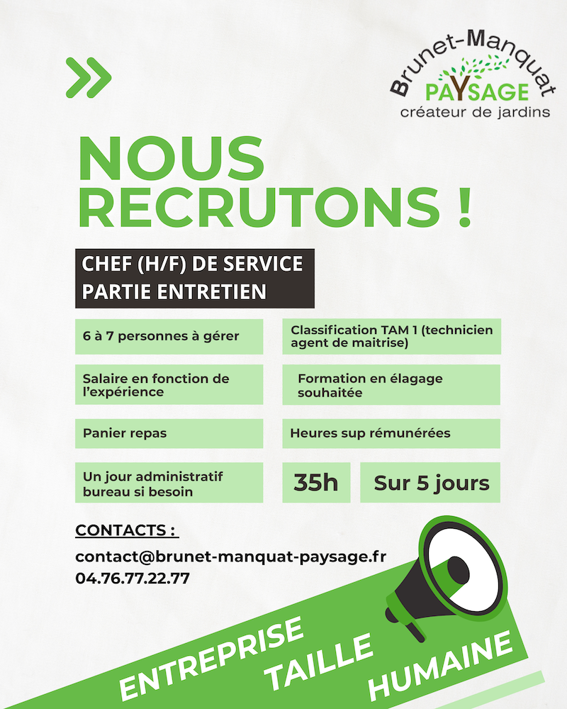 - Chef de service partie entretien : 6 à 7 personnes à gérer